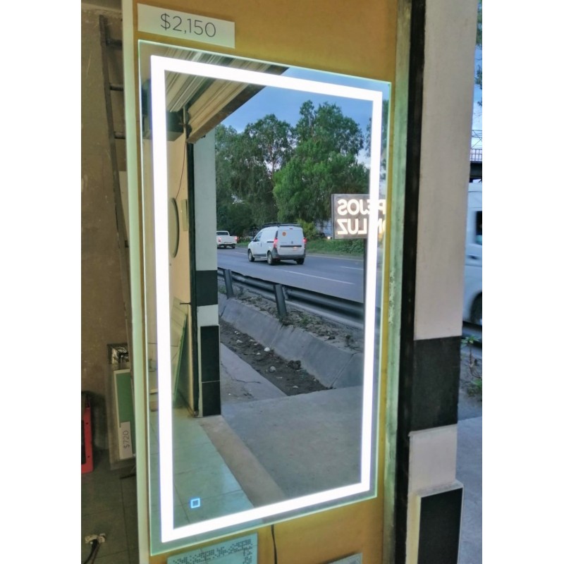 Espejo con iluminación led, fabricado con piezas de aluminio para una mayor durabilidad.